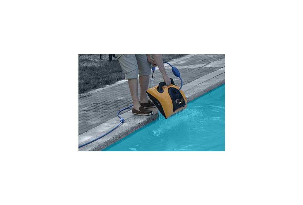 Als je de Dolphin W-20 uit je zwembad tilt, loopt het water extreem snel leeg. Hierdoor wordt de robot snel weer veel lichter om deze defintief uit het zwembad te tillen.